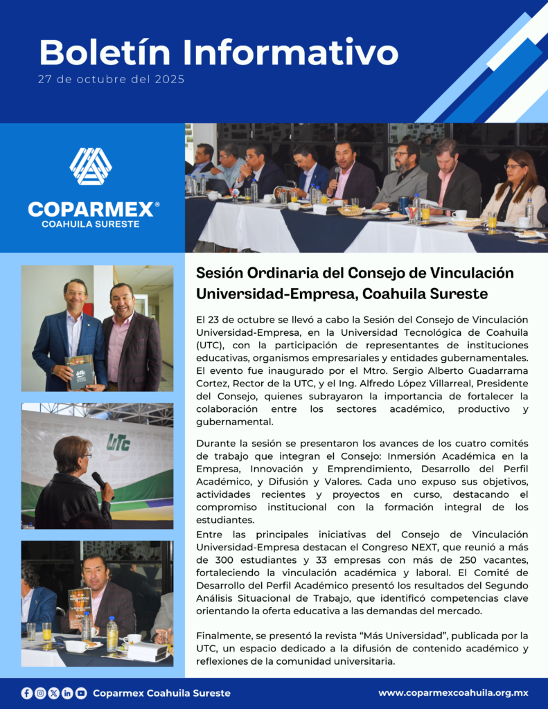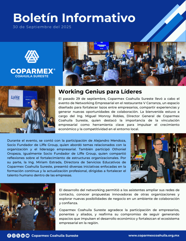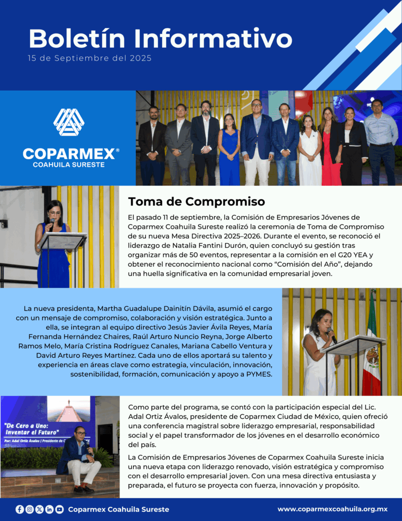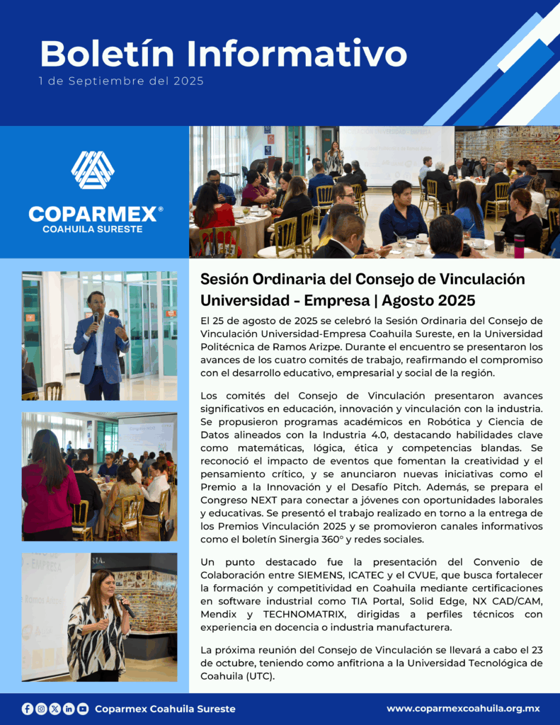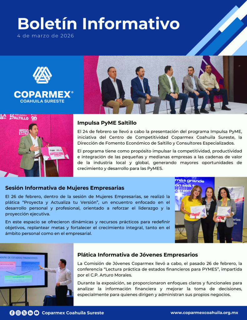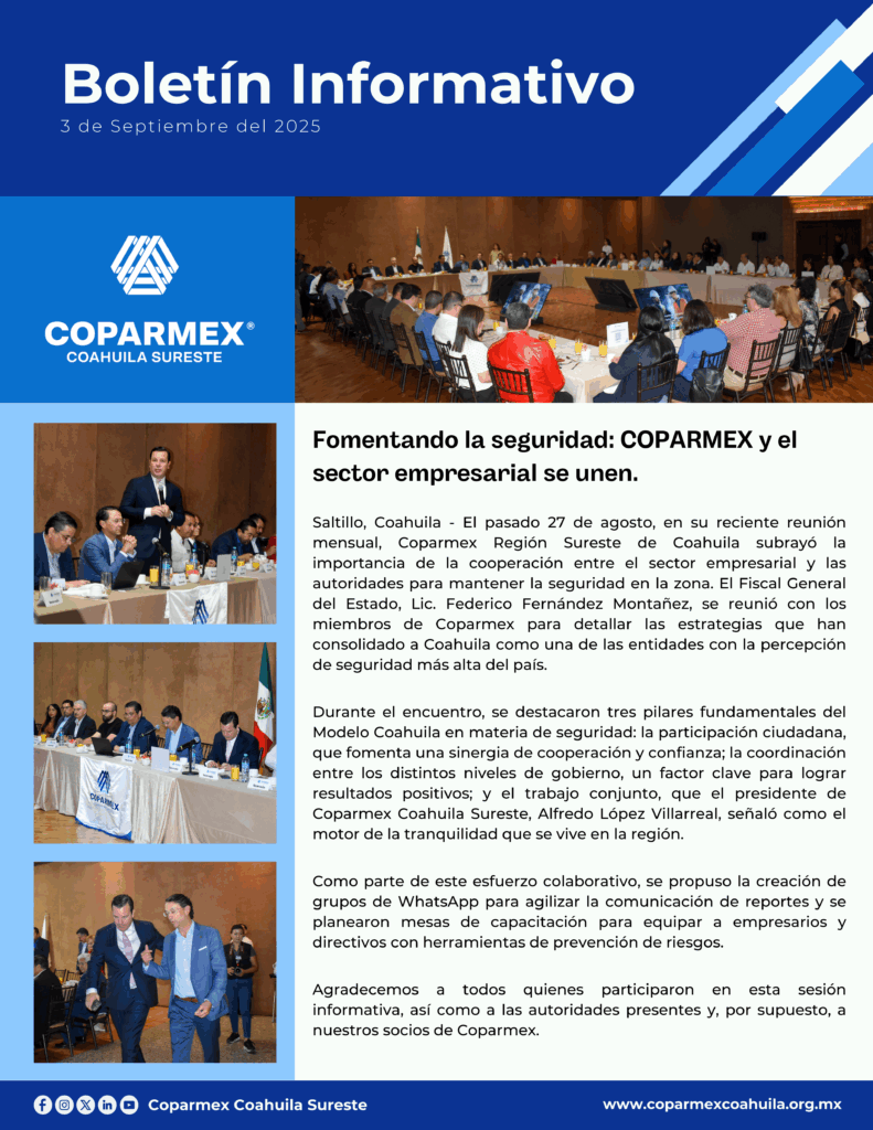 Mantente al día con las actividades de Coparmex Coahuila Sureste.